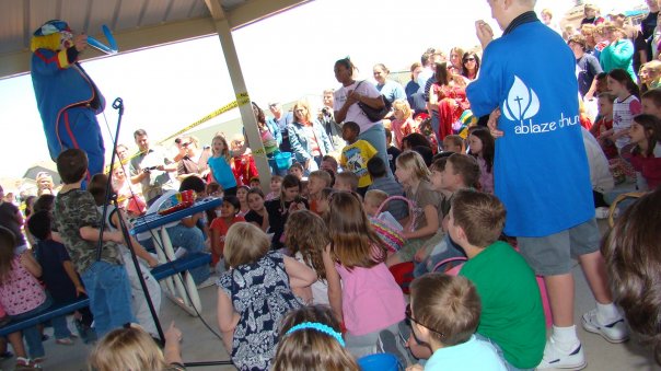 Our little mission start began on Easter weekend in 2006. We rent space from Liberty Elementary School and meet on Saturday nights with Bible Study at 6pm and services beginning at 6:30. Because of the rental costs and rules of the school we have to be out by 9:00 pm. Also because of rental costs, we can really only afford to be there one night a week. That does not leave a lot of opportunities for outreach which is why we host events from time to time.